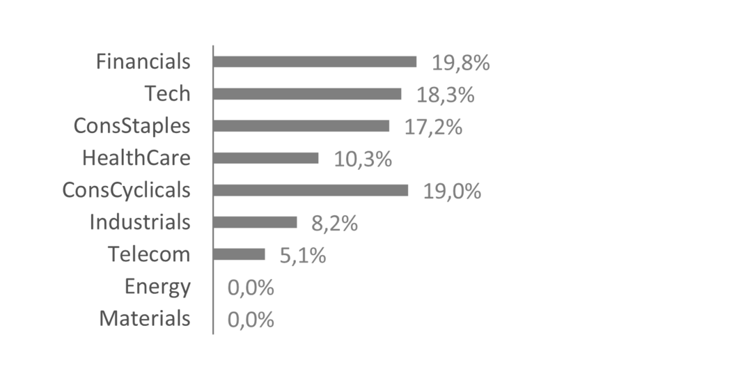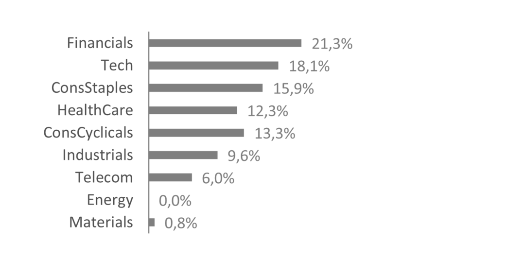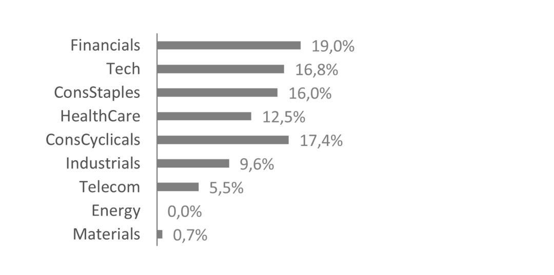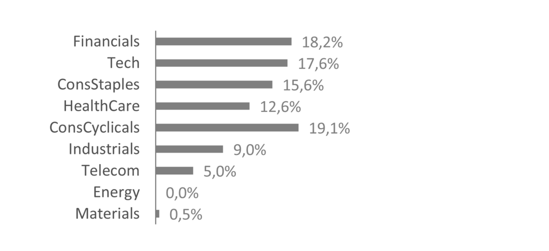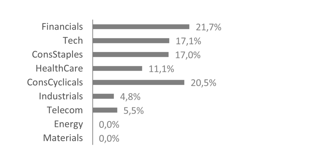 As the investment strategy is predominantly implemented in an emerging market environment, we consider a minimum portfolio breadth of 20-30 stocks necessary to ensure a sufficient level of diversification in the context of increased systematic risk.