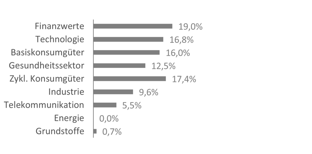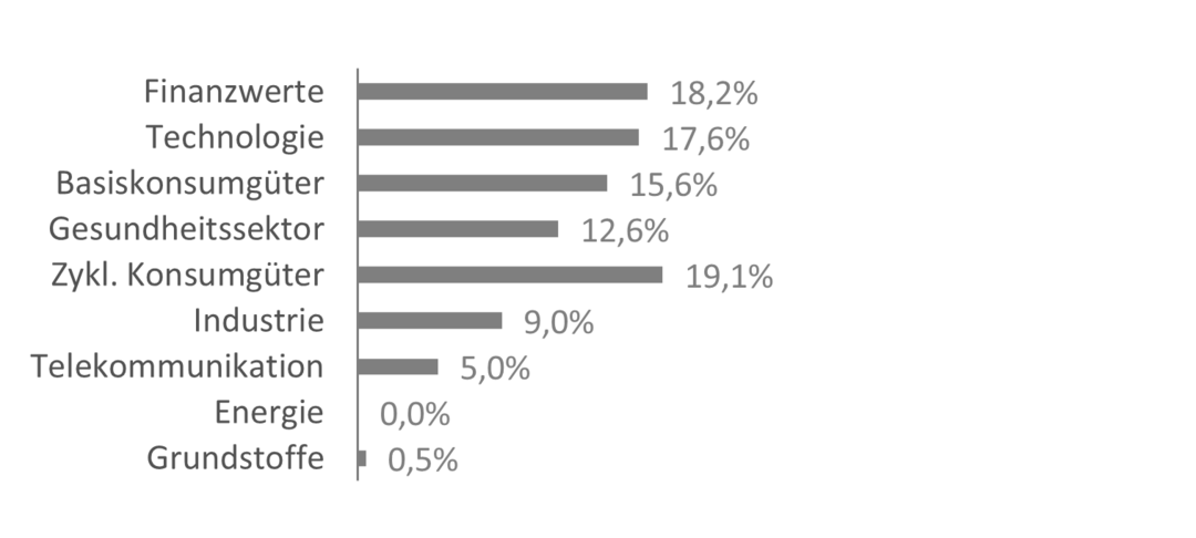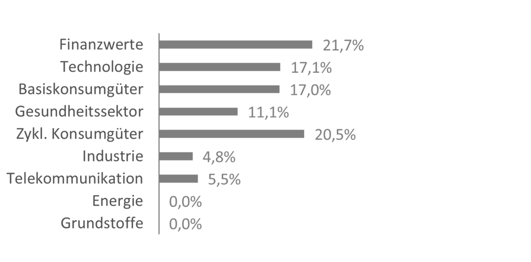 Da die Anlagestrategie überwiegend in einem Schwellenlandumfeld umgesetzt wird, halten wir eine Mindest-Portfoliobreite von 20-30 Titeln für notwendig, um ein ausreichendes Maß an Diversifikation im Kontext erhöhten systematischen Risikos zu gewährleisten.